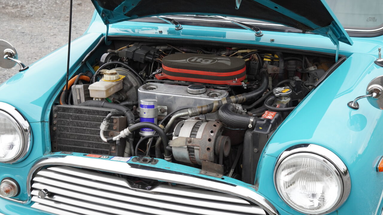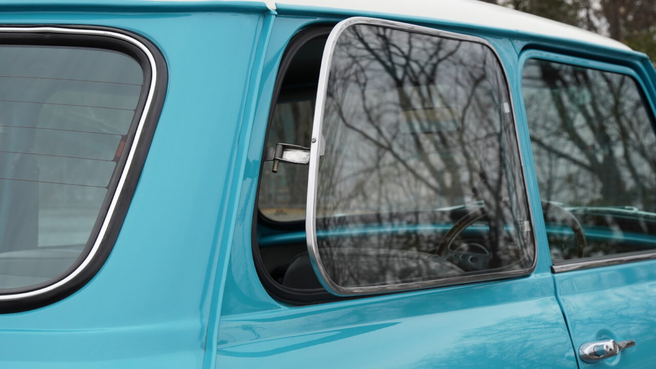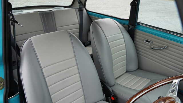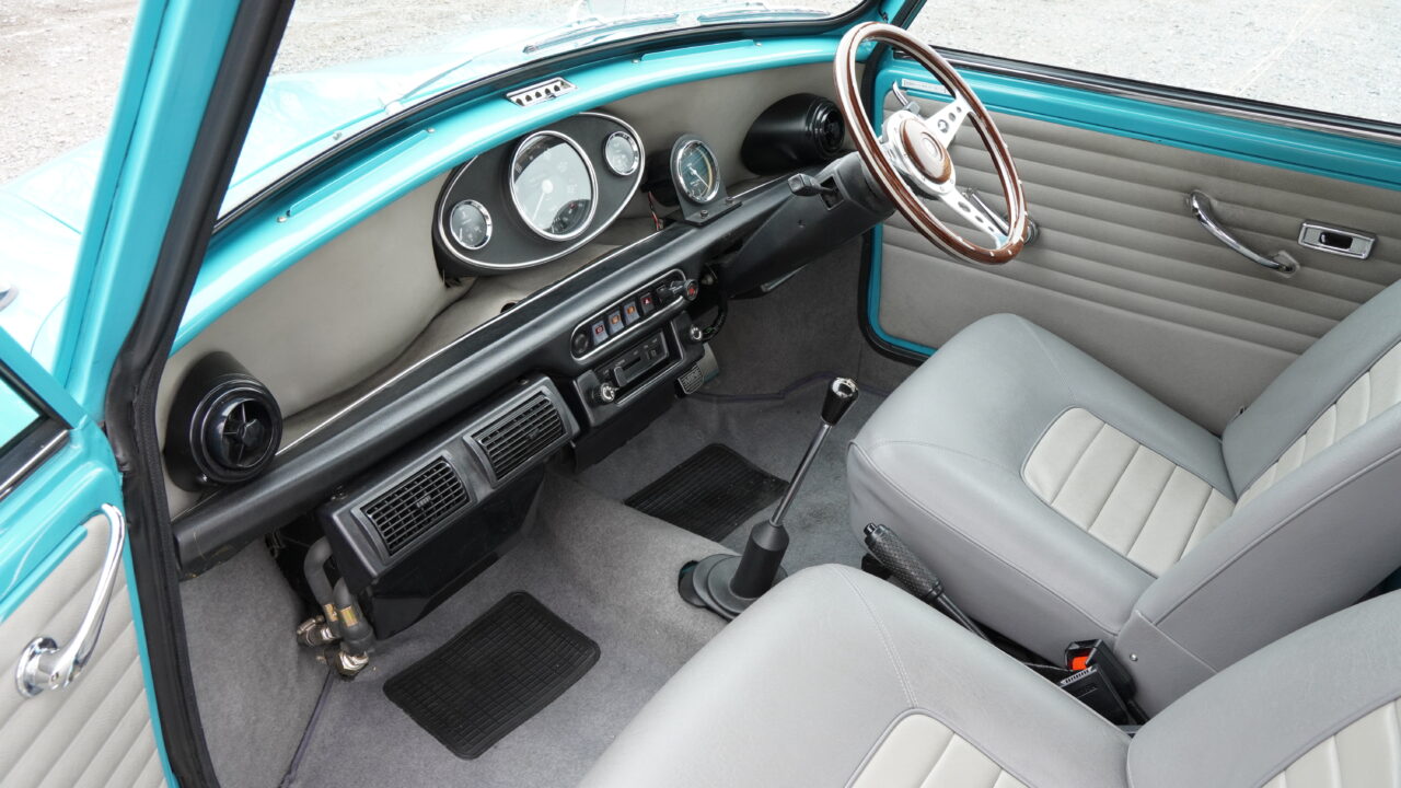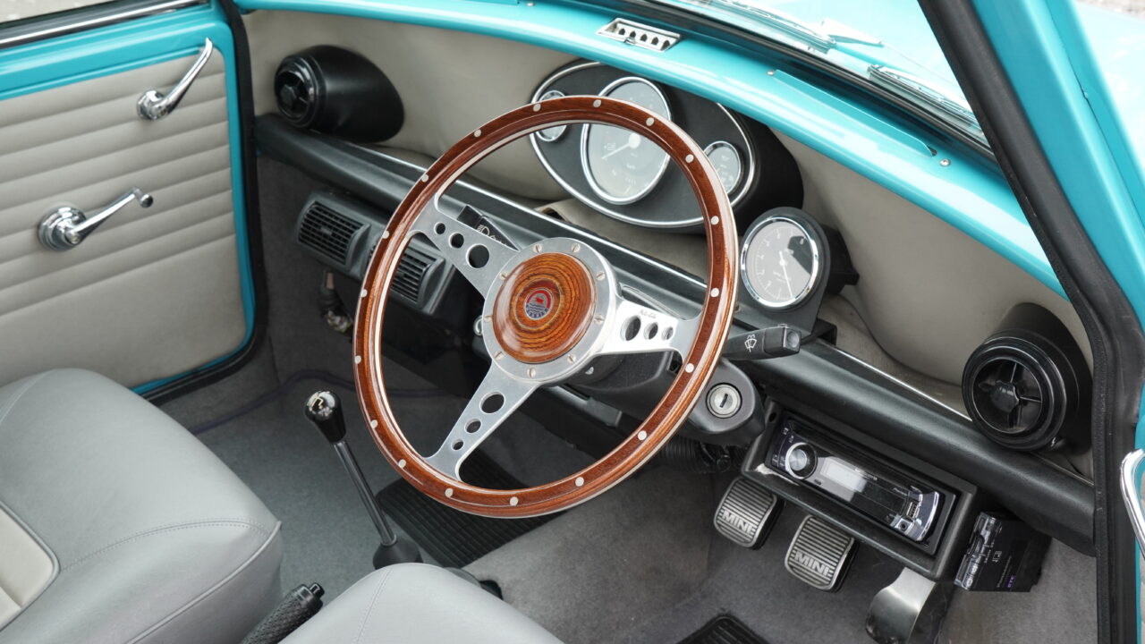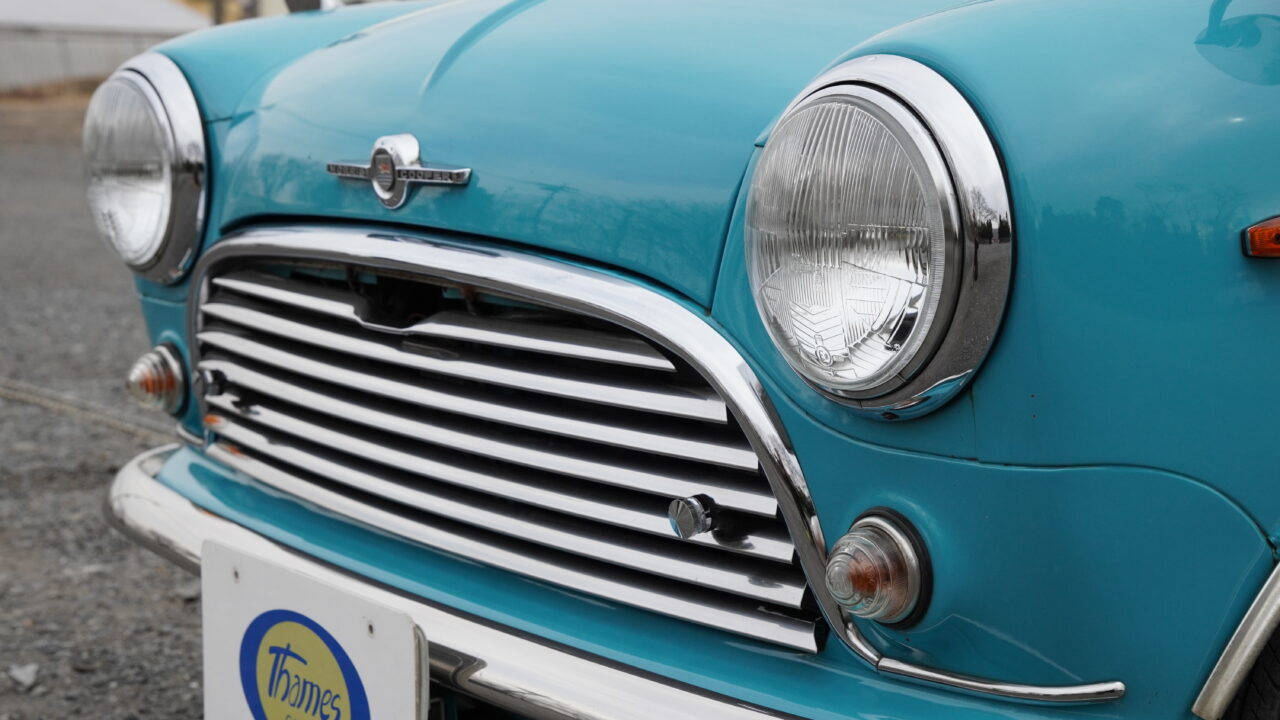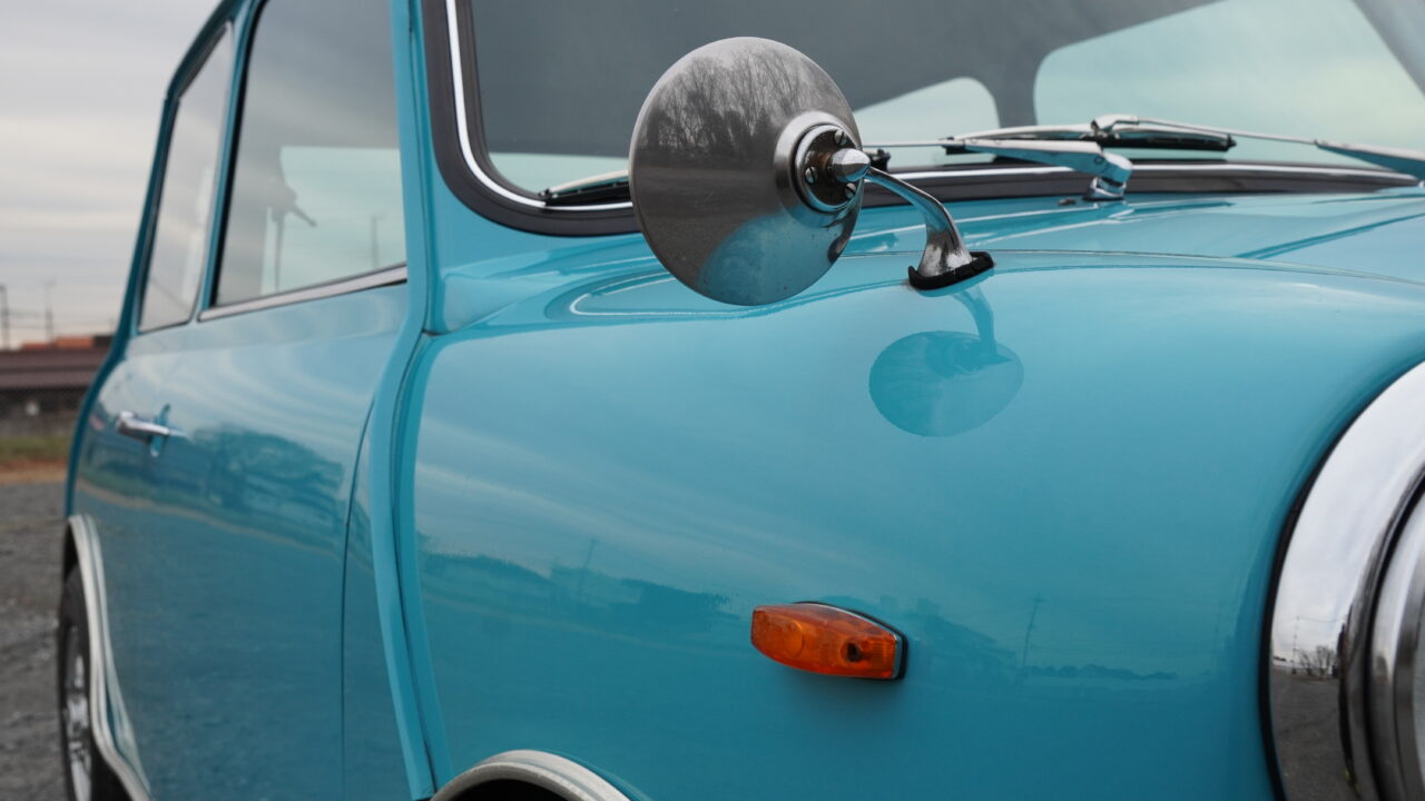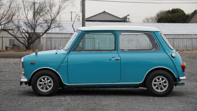 鮮やかなサーフブルーにオールペイントされたMK-1スタイルのマニュアルのミニが入庫しました。